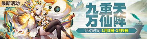 1月3日至1月9日,九重天、万仙阵玩法开启!道友们可在活动期间,点击主界面底部按钮【斗法】-【九重天】/【万仙阵】参与。